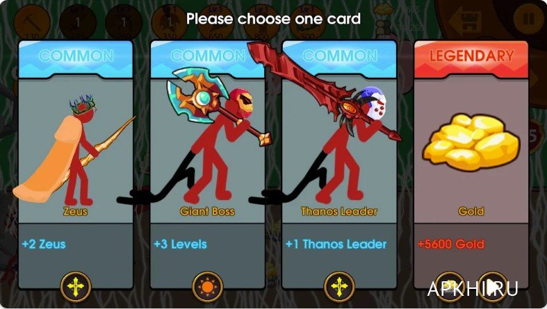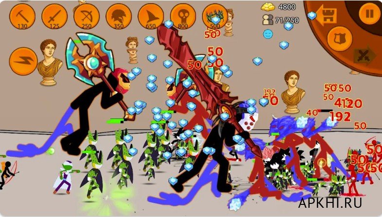 У бойцов имеется своя специфика. К примеру, они могут специализироваться на ближнем бою или на поддержке наступающих отрядов с помощью стрел, магии и т.д. Важно сохранять баланс, чтобы успешно сражаться с любым врагом.Stick King Returns v 6.0.0.2 (Мод меню/много денег) на Андроид: