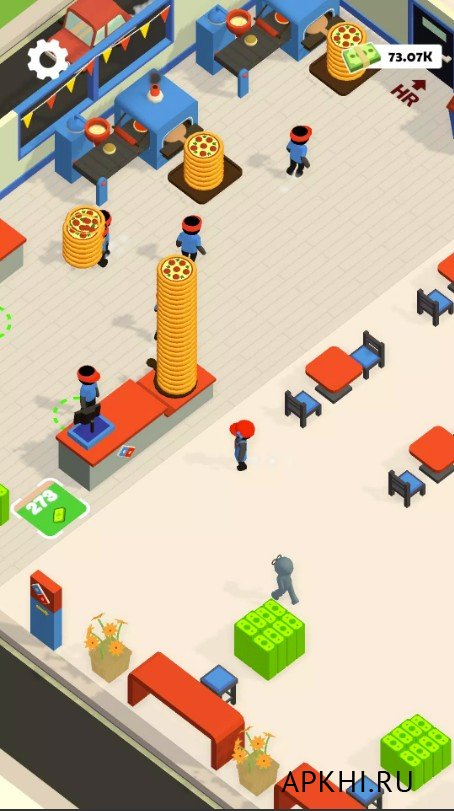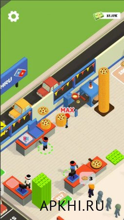 Достигнув одной вершины, приготовьтесь столкнуться с более сложными задачами. Расширяйте сферу влияния и открывайте филиалы в разных локациях, постоянно проводя улучшения.Pizza Tycoon Idle v 0.8 (Мод много денег и алмазов) на Андроид: