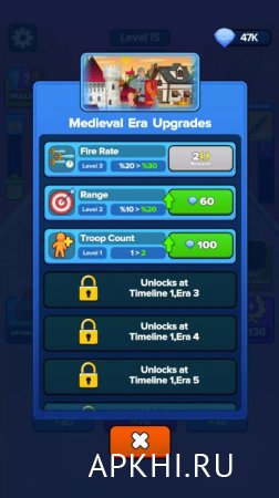 Age Breakers – необычная и яркая игра, в которой разработчики постарались передать все нюансы каждой используемой эпохи. Цель: путешествовать сквозь временные порталы, решать поставленные задачи (основные и временные) и создать могущественную армию, способную защитить королевство пользователя в любой эпохи от многочисленных угроз. Кроме основных боев в каждой отдельной эпохе, где нужно будет использовать разнообразные стратегии, вооружение и состав собственной армии, игроку придется столкнуться с боссом – хранителем врат. В каждой эпохе он свой, со своими особенностями. Поэтому стратегию придется каждый раз менять, чтобы получить очки и призы. Рейтинг игроков – приятная мотивация, чтобы продолжить улучшения в боях.