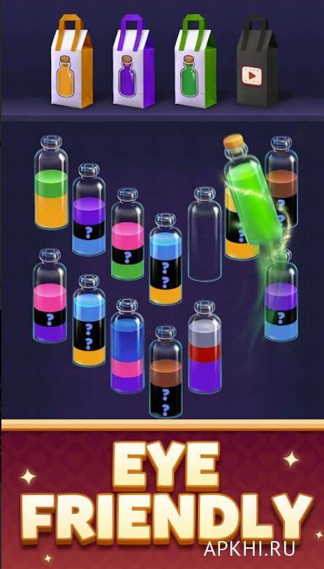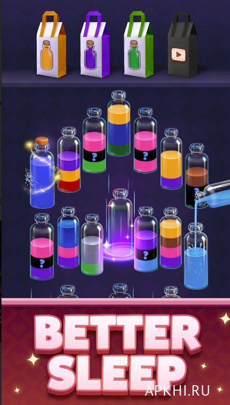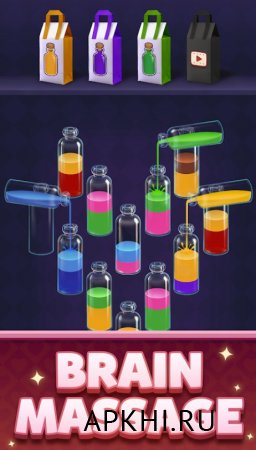 Water Match™- ASMR Water Sort затягивающая игра-головоломка с яркой графикой и приятный звуковым сопровождением, создающим успокаивающую ASMR-атмосферу. Ее задания заставят вас забыть о проблемах и помогут настроиться на глубокий спокойный сон. Смысл прохождения заключается в заполнении бутылочек жидкостями восьми разных цветов. Так уж случилось, что кто-то перепутал их между собой. Исправьте это и сможете записать в свой актив еще одну успешно пройденную головоломку. Особенности игры:
