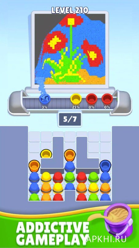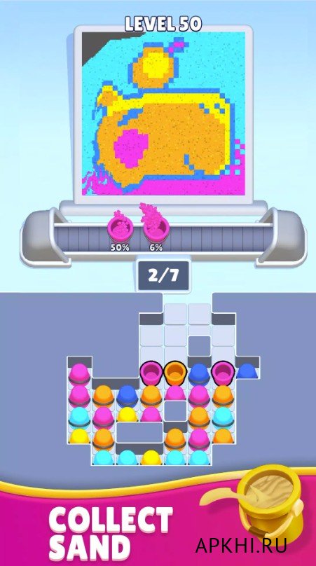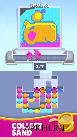Sand Loop― игра в жанре головоломки и казуалки, которая предлагает вам несколько интересных механик. Главная суть в том, чтобы соединить лабиринты к конвейерным линиям, обеспечить подачу нужного песка по цвету по колбам. В итоге это скажется на рисунке, который нужно получить по финалу прохождения уровня. Задействовать придется логику, внимательность и физику. Лабиринты на каждом уровне меняются, как и количество цветов песка, что повышает уровень сложности и вызова. Представлены сотни разнообразных и интересных уровней. В игре простая в освоении механика, но сами задачки действительно сложные и увлекательные. Благо, если будет слишком тяжело есть система подсказок, бустеров и усилений, которые помогут в прохождении.