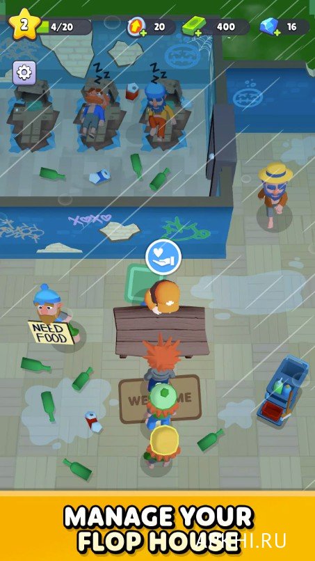 Flop House ― необычный в своем роде симулятор управления, где вам предстоит стать главным в социальном приюте для бездомных и всех нуждающихся. Задача в том, чтобы помочь максимальному числу людей, обеспечив им крышу над головой, уютное теплое место, продукты, еду и спальные места. Изначально распоряжении находится лишь пустующее здание, которое необходимо постепенно превращать в достойное место для ночлега и отдыха. С ростом гостей будет больше бюджет и финансирование, которое можно тратить на разные нужды. К примеру, на покупку кроватей и другой мебели, на расширение помещений, ремонт, новый персонал, закупку продуктов и организацию сборов и тому подобное. Все это сделано не как симулятор, а как казуальная стратегия, где все просто и понятно.