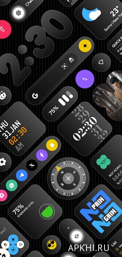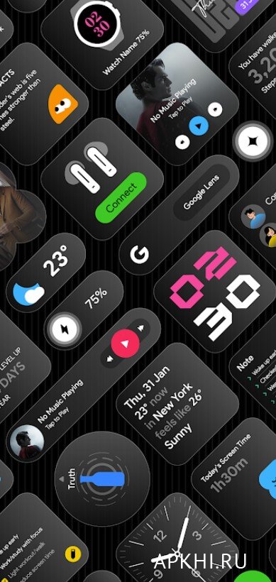 Glass Widgets ― пакет виджетов, стилизованных под матовое стекло, которые настраиваются на усмотрение пользователя. Вы может использовать более 350 вариантов дизайна и настроек. К примеру, можно менять цвет, стиль, рамку, фон, текстуру, размер и многое другое. К тому же функции самих виджетов полезные и нужные. Это часы, погода, подсчет шагов и калорий, состояние смартфона и куча всего еще на все случаи жизни. Главная особенность программы даже не в дизайне и разнообразие, а в автономности и нагрузке системы. То есть включенные виджеты вообще не влияют на устройство, практически ничего не потребляя. Кроме оптимизации, можно выделить гибкий и удобный пользовательский интерфейс. Также приложении немного весит в установленном виде.